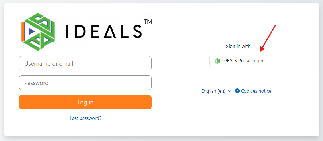 Due to Moodle's security requirements, you must explicitly click the "IDEALS Portal Login" button when prompted.