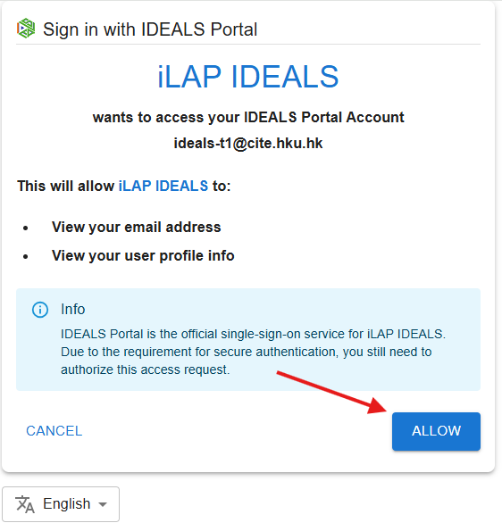The portal will ask for authorization to allow iLAP-IDEALS to access your account. Click "ALLOW".