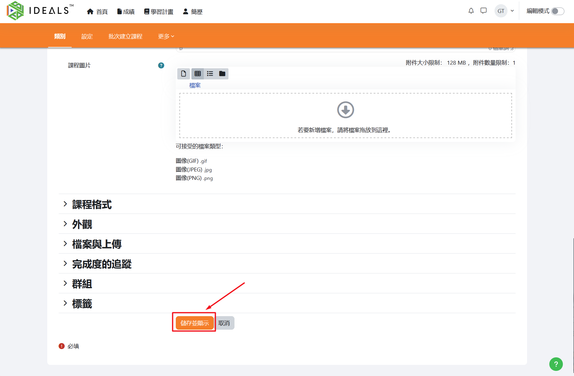 - 課程圖片:將顯示於我的課程和首頁的可選課程作為裝飾,你可以自行上載一張圖片,只需將圖片拖放到虛線框內便可。
