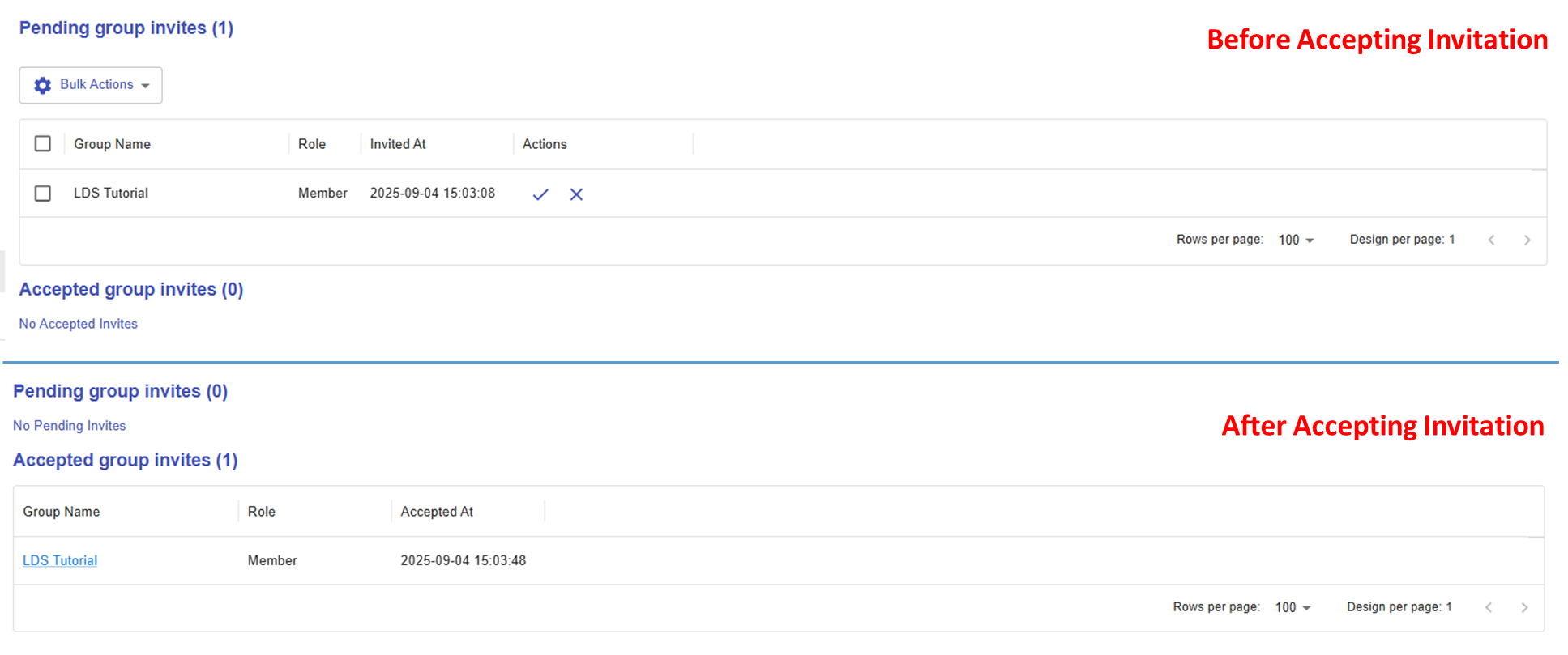If you receive a group invitation, you will get a notification from the system. By clicking on it, you will be redirected to the Pending Invites section shown in Figure 9.10 above. You can either accept or decline the invitation. After accepting, the invitation will move from "Pending Group Invites" to "Accepted Group Invites." |