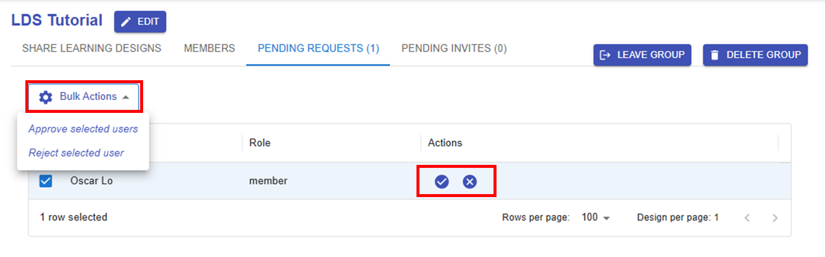 Once you've shared your designs, they will appear in the group. You can use Bulk Actions to unshare designs or change their permissions at any time. |