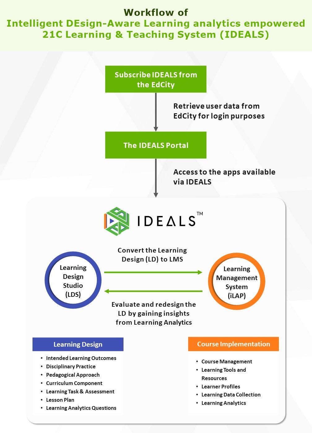 Intelligent DEsign-Aware Learning analytics empowered 21C Learning & Teaching System (IDEALS) is an intelligent system designed to enhance learning and teaching experiences.