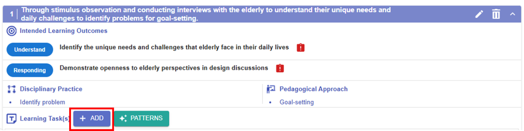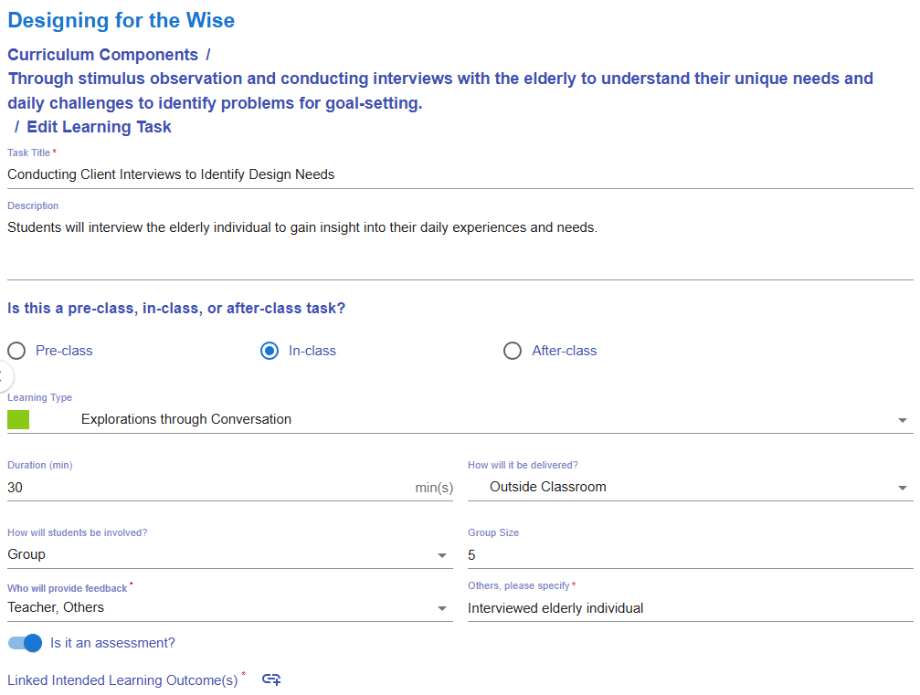 - * You can continue adding more tasks to complete your Curriculum Component (CC), and add additional CCs to finalize your learning design by repeating the steps mentioned above.