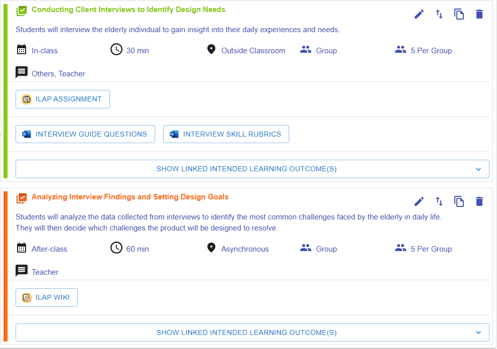 - After deciding on the intended learning outcomes, workflow steps, and pedagogical focus of the CC, the next step is to assign and sequence the learning tasks and assessments.