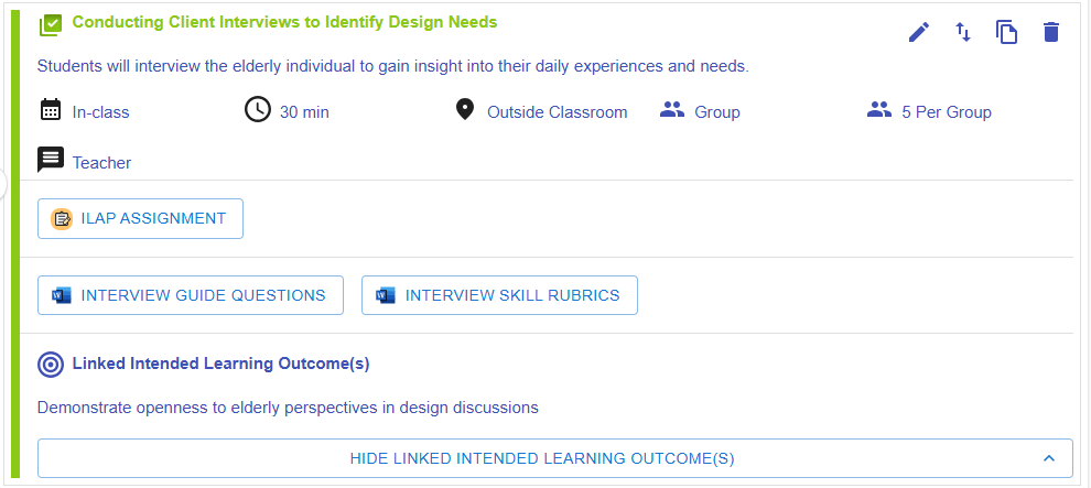 For example, you can upload the interview guiding questions and the interview skills rubric for use in the course.