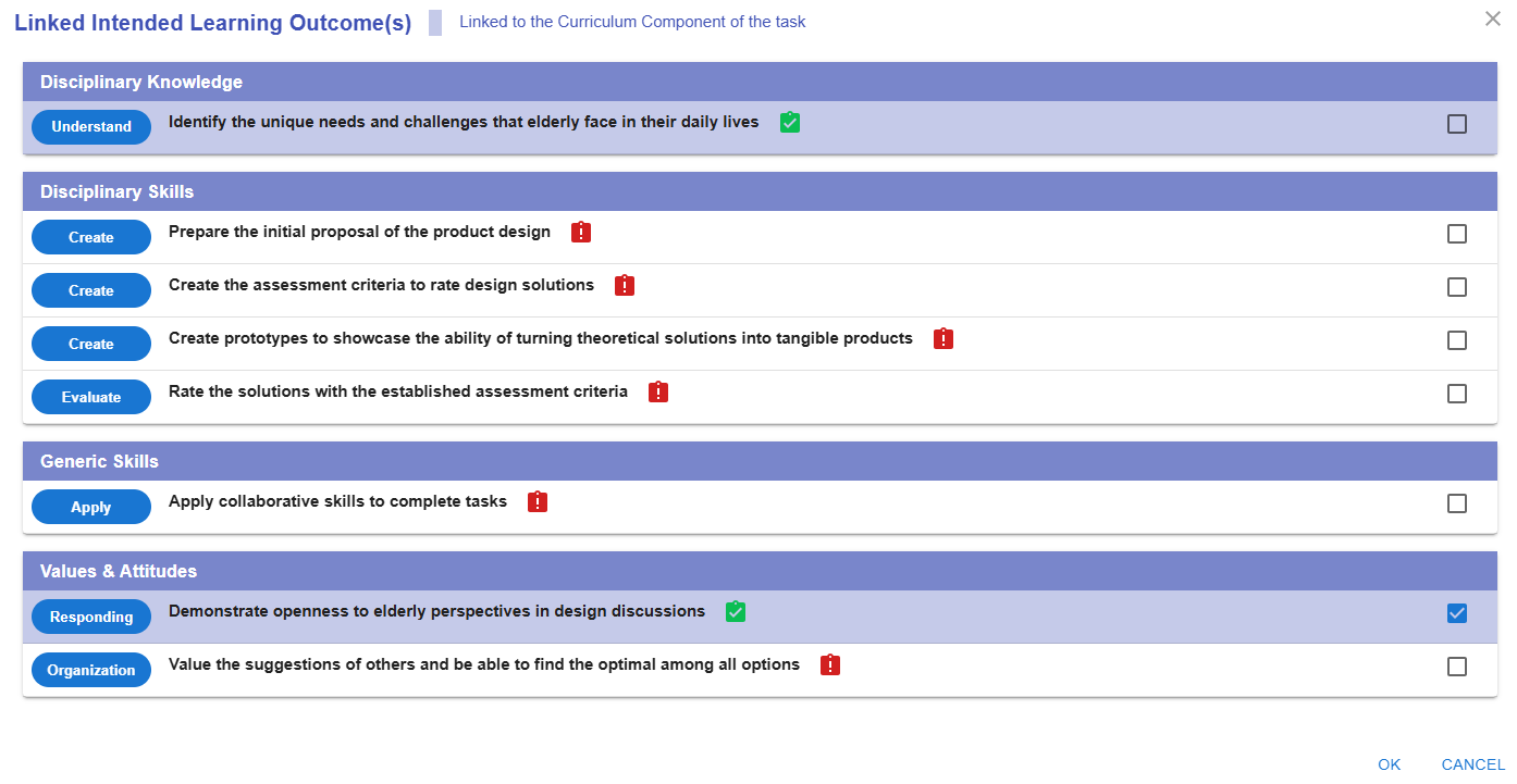 The LDS will remind you to assign assessments to any unassessed learning outcomes within the CC.