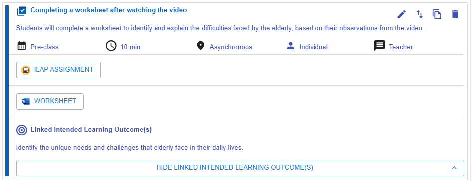 - After deciding on the intended learning outcomes, workflow steps, and pedagogical focus of the CC, the next step is to assign and sequence the learning tasks and assessments.