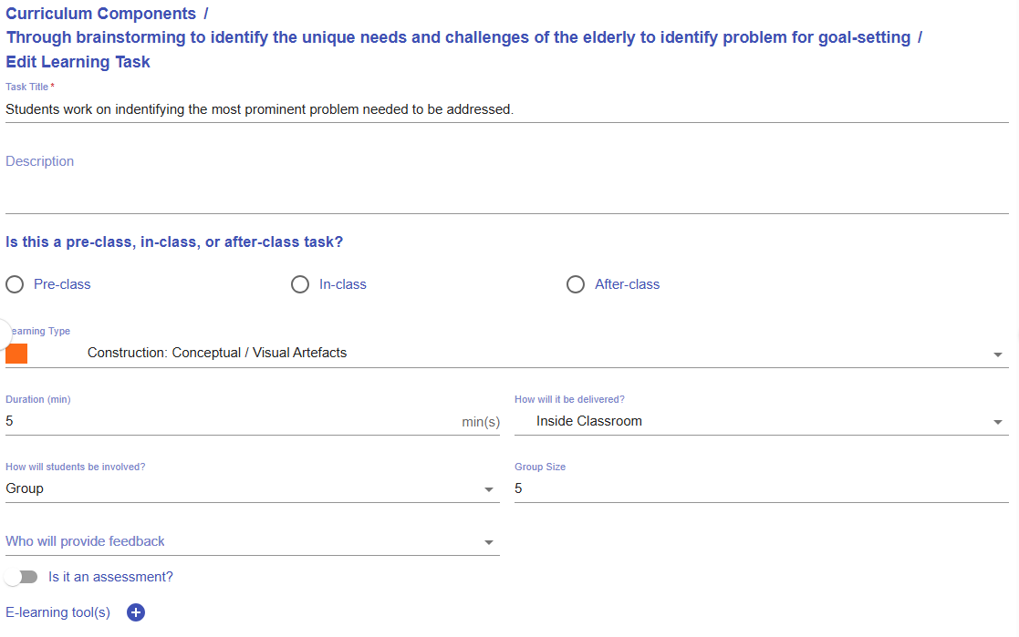 Figure 6.50: Interface for Adding E-learning Tool(s) to a Task |