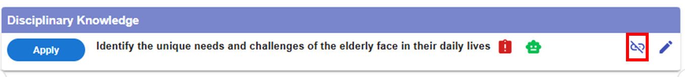 - Link the intended learning outcomes "Identify the unique needs and challenges of the elderly" to the CC.