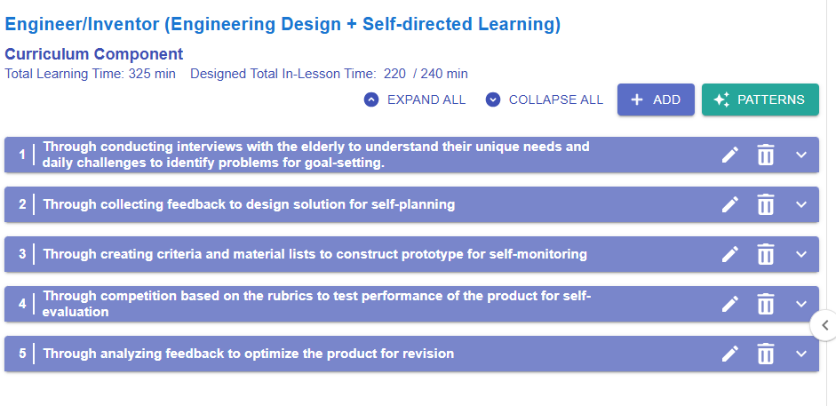 - Since this learning design focuses on creating a product for the elderly, your colleague may argue that brainstorming alone is insufficient. They might recommend adding an interview section to foster a user-centered mindset. In this case, CC Patterns can offer a quick and practical solution.